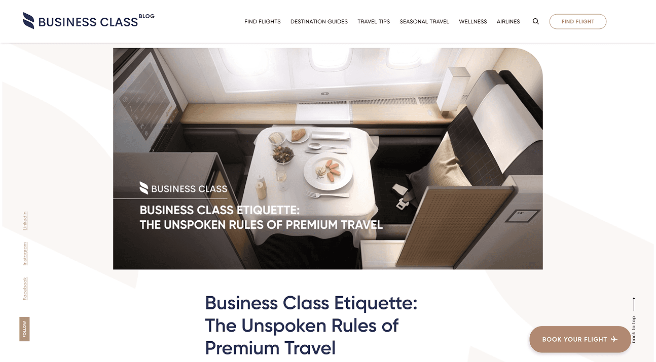 Business-Class.com approached us with a request to redesign their service-oriented website specializing in discounted business and first-class tickets. The goal was to retain brand recognition for existing customers while enhancing trust and appeal for new audiences.